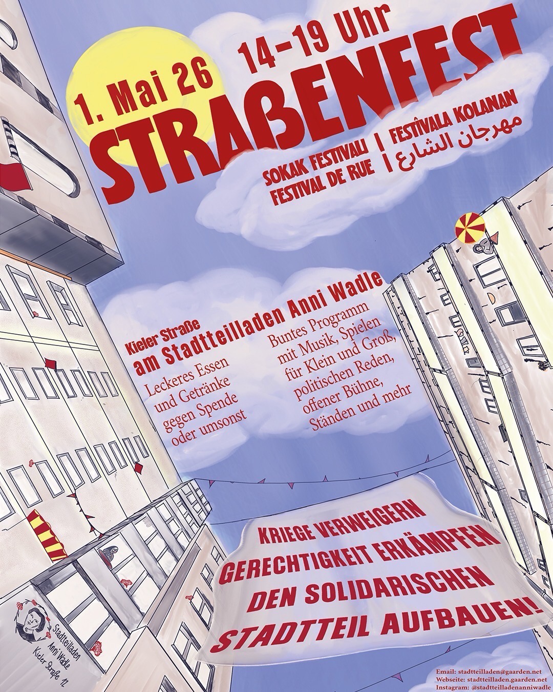 Liebe Gaardener:innen, liebe Nachbar:innen, liebe Genoss:innen, auch in diesem Jahr laden wir euch am 1.Mai zu unserem Straßenfest am Stadtteilladen Anni Wadle in die Kieler-Straße ein. Kommt gerne mit Freund:innen, Kolleg:innen und Familie zu einem solidarischen Beisammensein bei guter Musik, leckerem Essen und Getränken vorbei! Außerdem wird es ein Kinderprogramm sowie politische Reden und Infostände … Weiterlesen